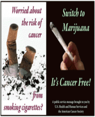 Not only does marijuana not cause serious addiction, but marijuana has also never killed anyone. The same cannot be said for cigarettes as they have accounted for more than 12 million deaths between the years of 1964 and 2004 (Drugabuse.gov). Of those deaths, 4.1 million have been caused by cancer, 5.5 million from cardiovascular diseases, 1.1 million from respiratory diseases, and 94,000 infant deaths related to mothers who have smoked during pregnancy (Drugabuse.gov). The nicotine found in cigarettes not only causes physical dependence, but it is also the root cause in all smoking related deaths. Donald Tashkin, a pulmonologist who has studied marijuana for thirty years, conducted the largest study of its kind on marijuana smoking and it’s relation to lung cancer. What he and his team found was “no association at all, and even a suggestion of some protective effect” against lung cancer (Kaufman). The chemical THC found in marijuana actually kills aging cells which prevents them from being cancerous, which has proven to be helpful in many medical cases. David L. Bearman, MD, physician, and medical marijuana expert, said, “We know if you smoke cannabis your chances of getting lung cancer are less than if you don’t smoke anything at all” (Procon.org). Smoking in general is not good for anyones health, but after considering the facts it seems that smoking marijuana is much healthier and cleaner than smoking nicotine. The public should be concerned with the amount of cigarette smokers that are out there as marijuana has proved to be healthier and safer than cigarettes in almost every category.